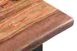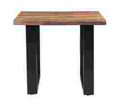 We have kept the design simple, as the richness of the natural rosewood top with a brown finish is all the decoration needed on the Stonellon end table. The live edges on the sides gently curve, each different, every one unique. Powder coated metal legs are the perfect choice for a base, U shaped and strong. A wonderful addition to your den or family room. Customer assembly is required.