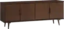 Simple, storage savvy, and sleek. This Stonesale TV stand boasts the best of both worlds with a mid-century silhouette, but all the convenience of modern storage. Two adjustable shelves within the cabinets lend the piece convenient and customizable storage, while a large open cubby offers the perfect perch for all your media components and dcor. With a solid wood build, this piece is meant to stay exactly where you think it suits your place best for years. Complete your abode's aesthetic with the matching coffee and side tables that feature the same simple yet sleek silhouette. Customer assembly is required.