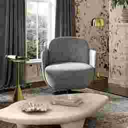 The Stormwoody II gray swivel accent chair is a bold nod to retro style, wrapped in ultra-soft, easy to clean fabric. With a supportive high back, full-foam seat, and smooth swivel base, it's equal parts comfort and cool. Customer assembly is required.