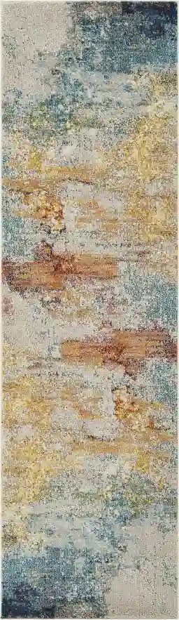 Bring life to any room with the breathtaking Stormy Skies rug. Featuring a mixture of soft blues, vivid red-orange and gleaming yellow tones. Constructed of 100% polypropylene. For maintenance, professional cleaning is recommended.