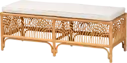 Elevate the carefree nature of your space with the fantastic Stoulig light brown accent bench. This bohemian piece consists of a handcrafted natural rattan frame topped with a plush foam-padded cushion upholstered in sumptuous fabric. Its rectangular silhouette features an openwork design interlaid with slim rattan rods for an airy display rich with geometric flair. The Stoulig will arrive fully assembled and features a removable cushion for superb convenience. Rattan is a product of nature and may have variations in areas such as, but not limited to, color, pattern, grain and texture. The hair-like strands of rattan/rattan-fiber are common due to the nature of the material.