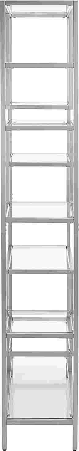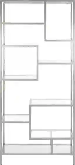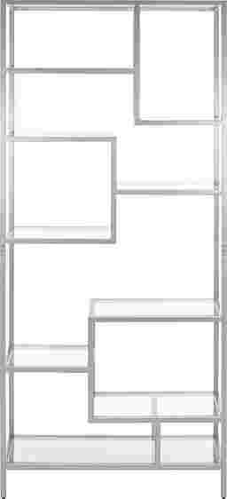 Showcase your treasures in undeniable style with this stunning Stranram tagre. Featuring nine staggered shelves that create decadent visual intrigue as well as provide plentiful display space, Stranram's liquid silver finish makes it the epitome of modern glamour. Customer assembly required.