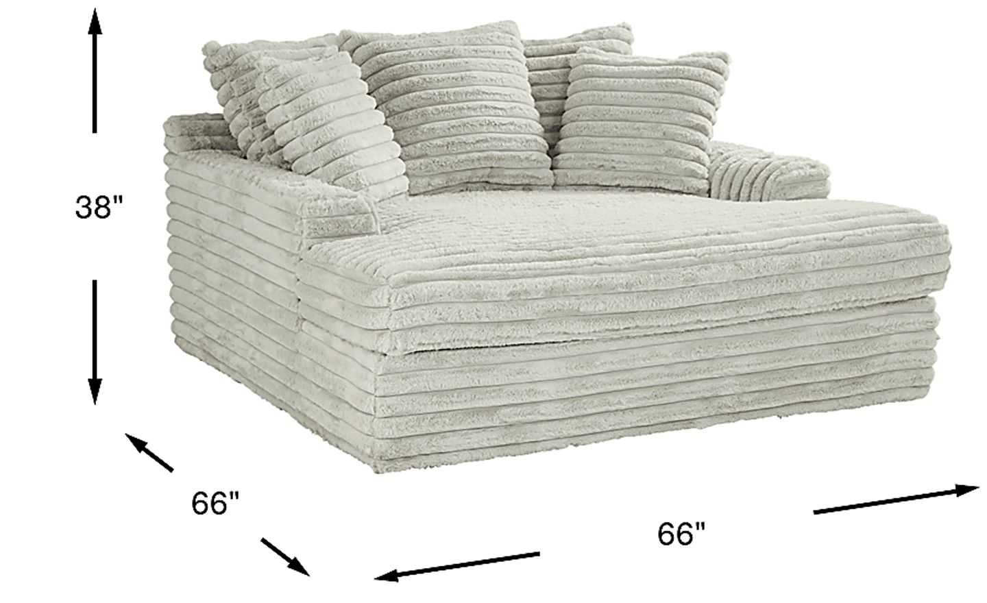 This chaise features a substantial 66-inch by 66-inch footprint, classifying it as a "cuddle chaise" or double-wide lounge. Because of its expansive "boisterous" design, it works best as a primary focal point in a master suite or as a room-defining piece in an open-concept living area. When planning your layout, we recommend leaving at least 24 to 30 inches of clearance around the perimeter to ensure comfortable traffic flow and easy access to the integrated tech features.