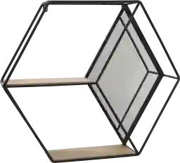 The gorgeous Stratman hexagonal shape and modern glam finish of these shelves with mirror make for a truly upscale piece. The shelves create an easy display and storage space while the mirror makes it extremely practical to use. Crafted from metal, wood and glass. Create a unique wall display and decorate your home eighth this accent mirror.