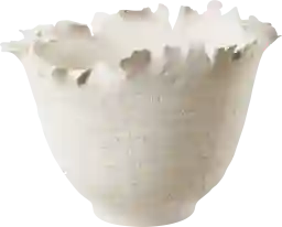 The organic, petal-like edges and substantial 10-inch height of this ceramic bowl make it an ideal vessel for natural, textured fillers. We suggest using large moss spheres, air plants, or seasonal botanicals like oversized pinecones to complement its floral theme. Because of its artistic, "imperfect" edges, it also functions beautifully as a standalone sculptural piece on a mantel or open shelving where its silhouette can be fully appreciated.