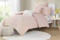 This comprehensive set is designed to create a fully coordinated look for a child's or teen's bedroom. It includes one duvet cover, matching pillow shams, a quilted Euro sham for added texture and height at the head of the bed, and two decorative pillows that provide the perfect finishing touches to the contemporary aesthetic.