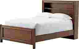 Super cool features make the Studio Guild bed an excellent choice that grows with your child. Crafted from wood solids and walnut veneers in a brown finish, it features a bookcase headboard with two open shelves and a reading light. A two-plug outlet with a USB port makes it easy to charge a tablet or phone close by. Mattress and foundation (if required) sold separately. Bunkie board required for mattress support.