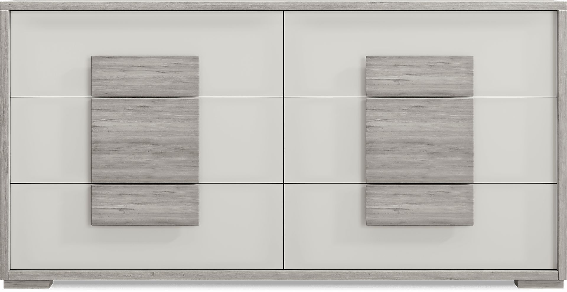 The Italian made Studio Place dresser is a wonderful example of sleek European design. This contemporary bedroom essential has six spacious drawers for folded clothing and accessories. A two-tone look is created with silver colored matte wood laminate and white high gloss Italian lacquer. The drawers are hardware-free for a clean, modern look.