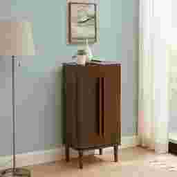 This armoire is constructed from wood and features a rich walnut finish. The dark wood finish provides a refined, earthy aesthetic that bridges the gap between modern and classic styles, making it a versatile addition to most bedroom decors. To maintain the luster of the walnut finish, we recommend regular dusting with a soft, dry cloth.