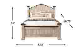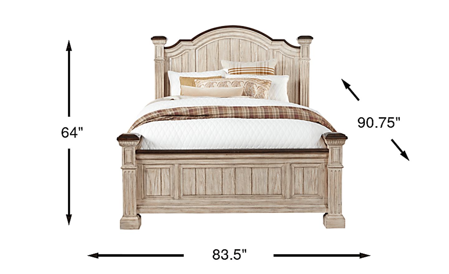 You'll love the warmth and relaxed rustic cottage styling offered by the charming Summerset poster bed. The bed features a shaped headboard and low posts enhanced with crown style moulding and fluted pilasters. Made with wood solids and white ash veneers, the bed has a beautiful cream finish with contrasting dark brown tops. Reversible rails allow you to raise or lower the height of your mattress. Mattress and foundation (if required) sold separately. Bed shown is queen size.