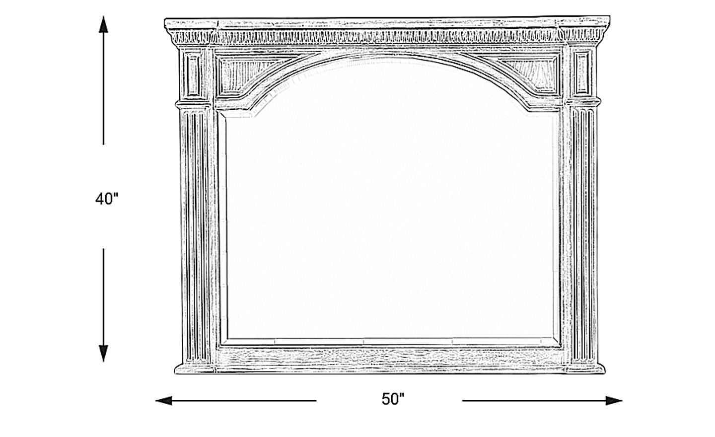 The antique cream Summerset mirror is the ideal choice to complete its matching dresser. Its arched glass is framed in wood solids and white ash veneers and features a contrasting dark brown top. Crown-style moulding and fluted pilasters add extra eye appeal.