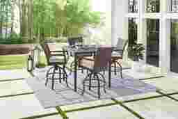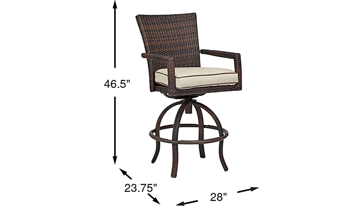 Dine outside in stylish comfort with the Summerset Way swivel stool. This supportive stool combines classic woven wicker with casual European style. An aluminum frame creates stability, while the padded sandstone beige colored seat cushion is covered in solution-dyed performance fabric for durability. A gently curved back and base create an elegant silhouette counterbalanced by each straight arm.