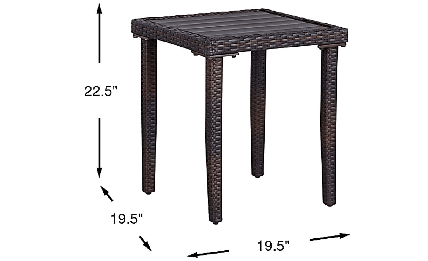 The perfect piece to add to your outdoor space, the Summerset Way end table features a raised height that makes it ideal for keeping next to your favorite chair. Crafted from brown wicker over an aluminum frame for durability, clean slat lines and a relaxed European style add exceptional eye appeal.