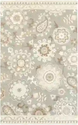 This rug’s unique paisley design and soft ivory and gray hues make it a sophisticated centerpiece for boho or transitional interiors. To create a cohesive look, pair it with neutral-toned furniture to let the pattern stand out, or embrace a full bohemian aesthetic by layering it with natural textures, such as wood accent tables or woven decorative mirrors.
