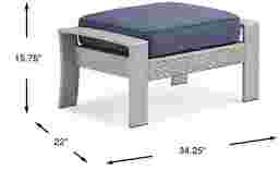 Extend your relaxation and add great style to your outdoor space with the Sun Valley ottoman. Crafted of weather-resistant aluminum with wicker accents in a light gray finish, this piece is designed for longevity. Ideal for putting your feet up, the blue cushion helps this ottoman perfectly complement its matching chair.