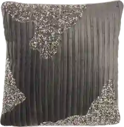 This Collection of throw pillows brings accessibility to luxury. Velvety soft textures and beaded accents elevate your space with an elegant touch thats positively eye-catching. Show off your love for luxe style with this glam throw pillow. With its ribbed stripe design, sparkling beaded accents, and velvety soft feel, it effortlessly blends style and function. Charcoal grey cover includes a polyester insert for soft support, with a zipper closure hidden at the base. Reverses to a solid cotton back for double design power. 18 square.