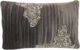 This Collection of throw pillows brings accessibility to luxury. Velvety soft textures and beaded accents elevate your space with an elegant touch thats positively eye-catching. Show off your love for luxe style with this glam lumbar throw pillow. With its ribbed stripe design, sparkling beaded accents, and velvety soft feel, it effortlessly blends style and function. Charcoal grey cover includes a polyester insert for soft support, with a zipper closure hidden at the base. Reverses to a solid cotton back for double design power. 12 x 20 rectangle.