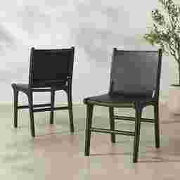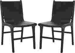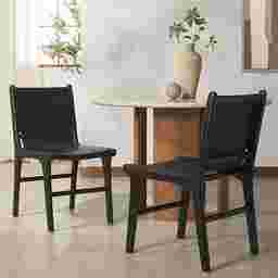 Add timeless sophistication to your dining space with this Sunlants black side chair. Expertly crafted from solid teak wood and upholstered in luxurious top grain leather, this chair offers a sleek black finish that complements both modern and classic interiors. Its substantial frame ensures lasting durability, while the supple leather provides superior comfort and a flawless finish. More than just a seat, this set of chairs a is a statement of refined taste and design excellence. Perfect for elevating everyday meals into memorable moments. Customer assembly required.
