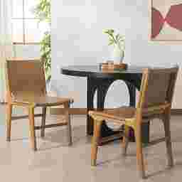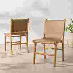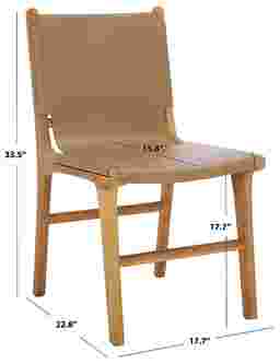 Add timeless sophistication to your dining space with this Sunlants brown side chair. Expertly crafted from solid teak wood and upholstered in luxurious top grain leather, this chair offers a sleek finish that complements both modern and classic interiors. It's substantial frame ensures lasting durability, while the supple leather provides superior comfort and a flawless finish. More than just a seat, this set of chairs a is a statement of refined taste and design excellence. Perfect for elevating everyday meals into memorable moments. Customer assembly required.
