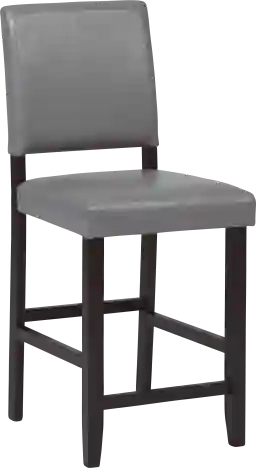 Suitable for a dining set or kitchen counter, the Sunset View stool provides a stylish seating option. Thanks to its smooth gray upholstery covering the seat and back, this piece boasts a leather look without the high price.
