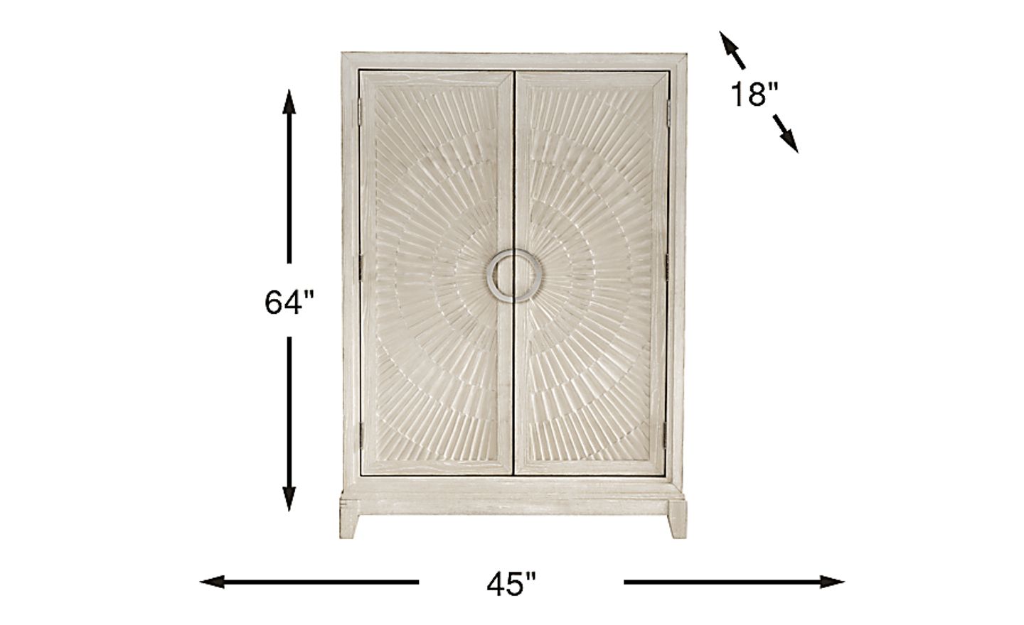 The sunburst relief pattern on the doors and the gleaming chrome ring pulls are hallmark elements of Modern and Contemporary design. These geometric details add a sophisticated architectural texture to the room, making this armoire a versatile focal point that can complement Modern, Boho, or Contemporary bedroom decors.