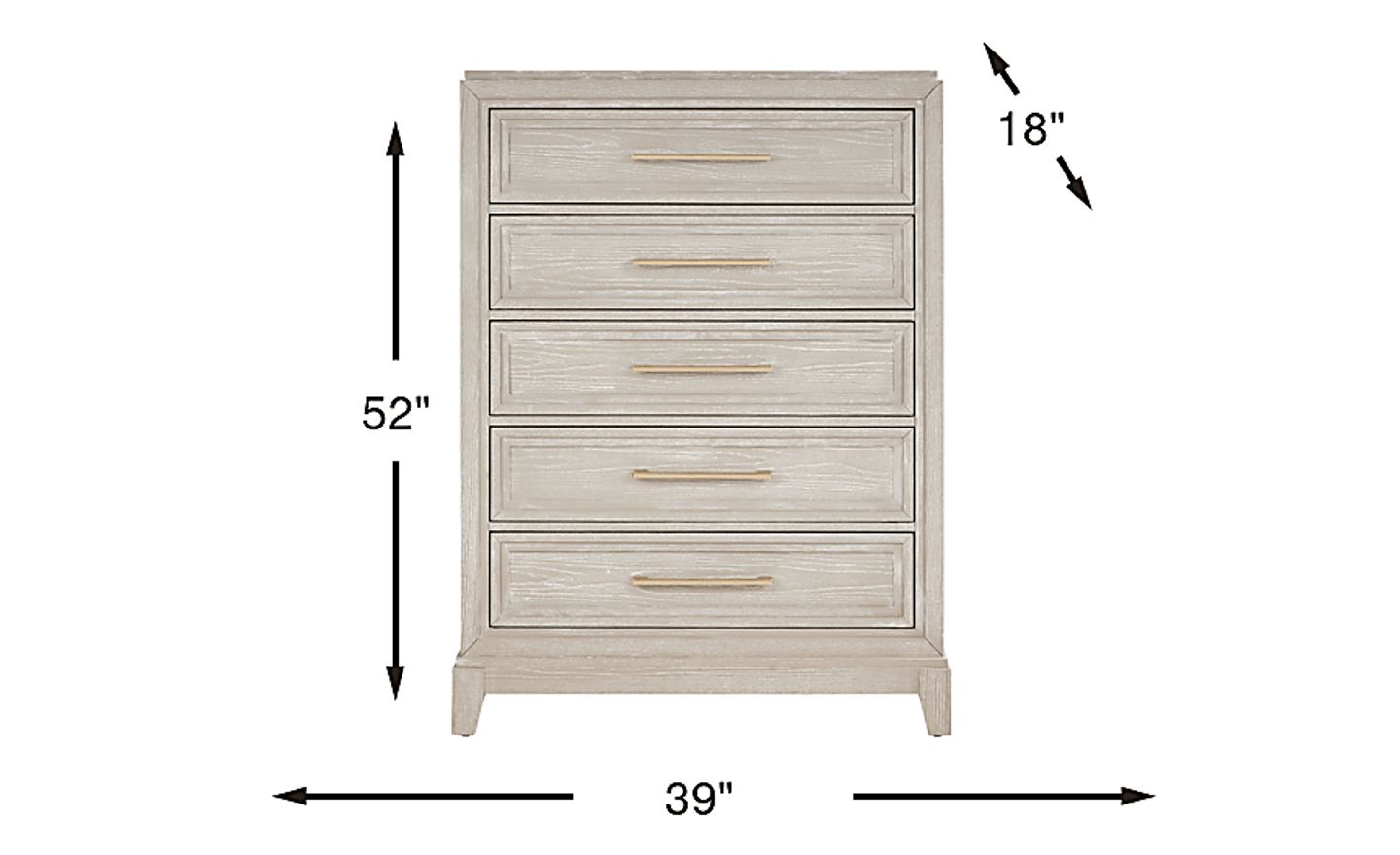 Brimming with luminous contemporary charm, the Sunside Way chest offers glorious style for your space. Crafted with poplar solids in a sand color finish, this five-drawer chest is configured with French dovetail fronts and backs with ball bearing full extension glides. Each of the drawers has a metal bar pull finished in gleaming chrome for the perfect final touch.