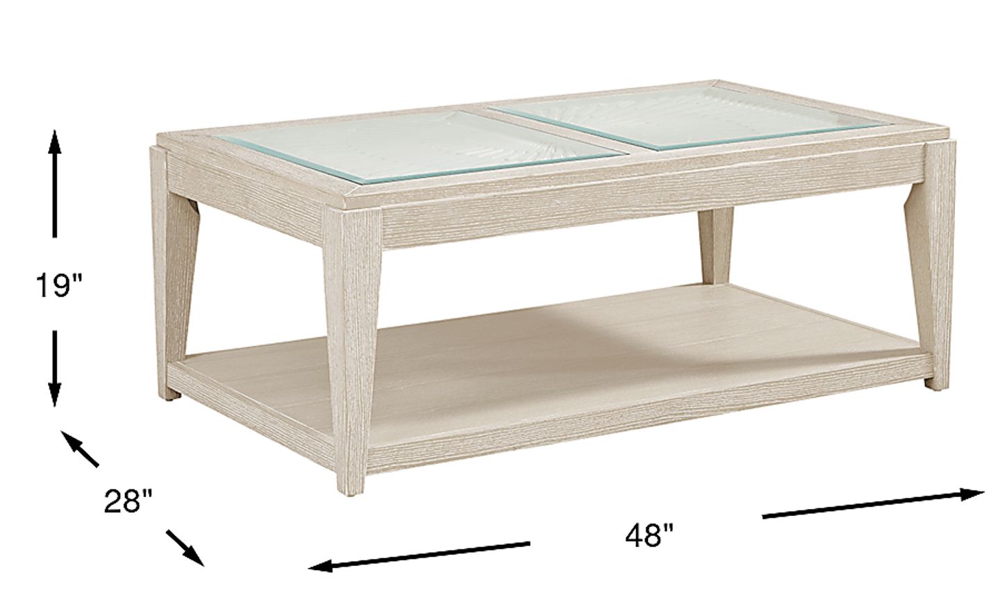 Designed to evoke the feel of a beachfront bungalow, the light sand-colored finish provides an organic warmth that complements contemporary and coastal decors alike. The straight-leg design and rectangle silhouette keep the look clean and sophisticated, while the lower shelf offers practical storage to keep your living area serene and clutter-free.