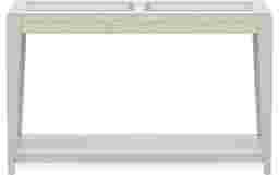 As radiant as the first rays of morning sun peeking into a beautiful beachfront bungalow, the Sunside Way sofa table brings all the excitement of contemporary, coastal style to your living room setup. Crafted in a sand color finish, this piece features a rectangle top with decorative glass inserts.