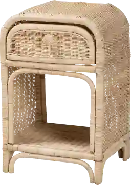 An ambiance of rustic tranquility arrives in your bedroom with the lovely Suntaug natural nightstand. This bohemian piece consists entirely of natural rattan. Its rounded design is equipped with a drawer to organize bedside essentials while the open shelf accommodates larger items. The Suntaug will arrive fully assembled and features a woven drawer knob that complements the exotic quality of the piece. Due to the nature of the natural materials used in this product, it may have variations in areas such as, but not limited to, color, pattern, grain and texture. The hair-like strands of rattan/rattan-fiber are common due to the nature of the material.