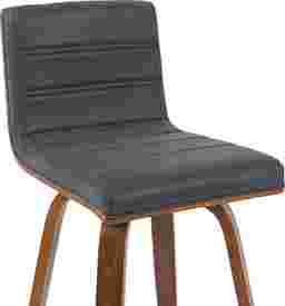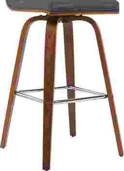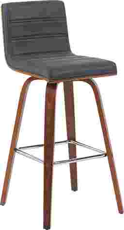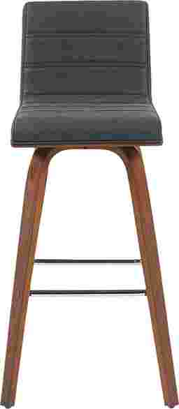 Elevate your kitchen, bar, or dining area with the Sunways I black barstool, a modern essential that combines mid-century charm with functional comfort. Designed for daily use and entertaining alike, the 360-degree swivel and armless frame provide effortless movement and easy conversation flow. The gently curved backrest supports posture alignment while keeping the profile sleek and space-saving. The Sunways is built on a strong wood frame with four splayed legs and a square steel footrest for added durability and a clean, modern edge. The seat and backrest are generously padded with high-density foam. Customer assembly is required.