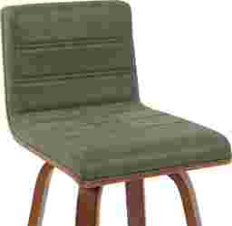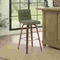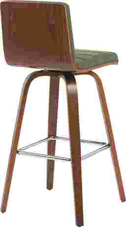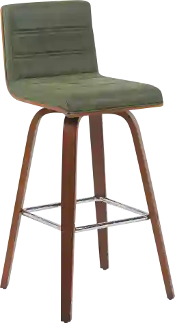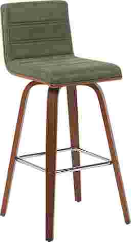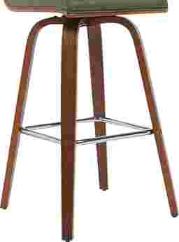 Elevate your kitchen, bar, or dining area with the Sunways I green barstool, a modern essential that combines mid-century charm with functional comfort. Designed for daily use and entertaining alike, the 360-degree swivel and armless frame provide effortless movement and easy conversation flow. The gently curved backrest supports posture alignment while keeping the profile sleek and space-saving. The Sunways is built on a strong wood frame with four splayed legs and a square steel footrest for added durability and a clean, modern edge. The seat and backrest are generously padded with high-density foam. Customer assembly is required.