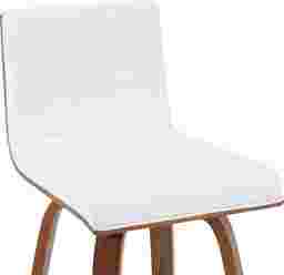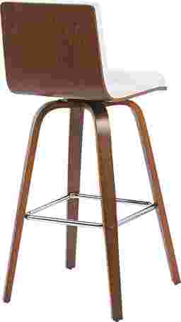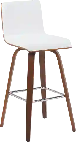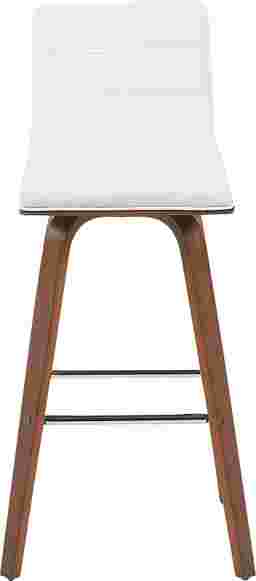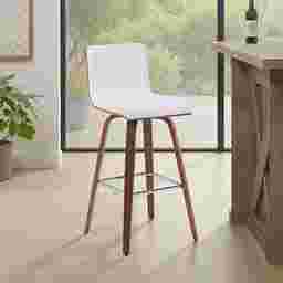 Elevate your kitchen, bar, or dining area with the Sunways I white barstool, a modern essential that combines mid-century charm with functional comfort. Designed for daily use and entertaining alike, the 360-degree swivel and armless frame provide effortless movement and easy conversation flow. The gently curved backrest supports posture alignment while keeping the profile sleek and space-saving. The Sunways stool is built on a strong wood frame with four splayed legs and a square steel footrest for added durability and a clean, modern edge. The seat and backrest are generously padded with high-density foam. Customer assembly is required.