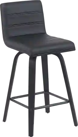 Elevate your kitchen, bar, or dining area with the Sunways II black counter height stool, a modern essential that combines mid-century charm with functional comfort. Designed for daily use and entertaining alike, the 360-degree swivel and armless frame provide effortless movement and easy conversation flow. The gently curved backrest supports posture alignment while keeping the profile sleek and space-saving. The Sunways is built on a strong wood frame with four splayed legs and a square steel footrest for added durability and a clean, modern edge. The seat and backrest are generously padded with high-density foam. Customer assembly is required.