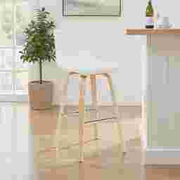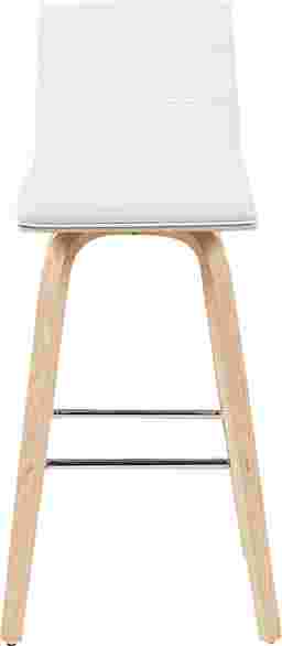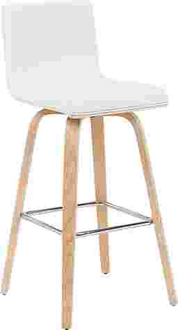 Elevate your kitchen, bar, or dining area with the Sunways III white barstool, a modern essential that combines mid-century charm with functional comfort. Designed for daily use and entertaining alike, the 360-degree swivel and armless frame provide effortless movement and easy conversation flow. The gently curved backrest supports posture alignment while keeping the profile sleek and space-saving. The Sunways is built on a strong wood frame with four splayed legs and a square steel footrest for added durability and a clean, modern edge. The seat and backrest are generously padded with high-density foam. Customer assembly is required.