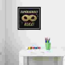 Add a heroic touch to your young one's room with the Super Hero Fan artwork and incorporate its contrasting shades into the interior decor. This piece features a unique text design in the shade of gold against a black background.