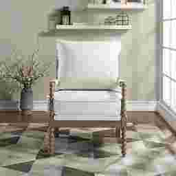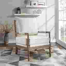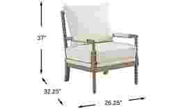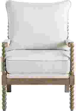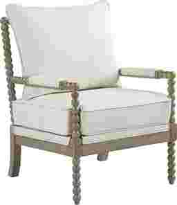 Timeless charm and artistic craftsmanship meet in the Susanna accent chair, where texture and silhouette work together to create a moment of relaxed refinement. Upholstered in a beige woven fabric, this traditional piece features plush, reversible cushions that offer both support and softness. Its turned spool frame in an antique brown finish adds character and warmth, evoking a handcrafted aesthetic that feels grounded and intentional. Upholstery: 100% Polyester.