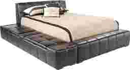 With its dark brown faux leather upholstery and hidden storage the Susannah bed offers great value along with a sleek contemporary look. Its padded headboard makes a comfortable backrest for reading or watching TV in bed. The side bench features two deep storage chests perfect for tucking away extra bedding, pillows and more. A smooth laminate surface is located on the head and foot of the storage rail. Susannah 3 Pc Queen Bed