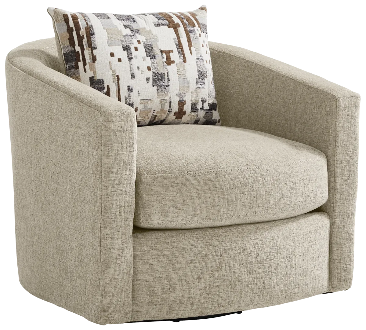 Yes, this sectional includes coordinated accent pillows that complete the contemporary look. These pillows are specifically designed to complement the upscale beige woven fabric while offering adjustable comfort. They help soften the clean lines of the low-profile track arms, providing an extra layer of lumbar support for cozy evenings.