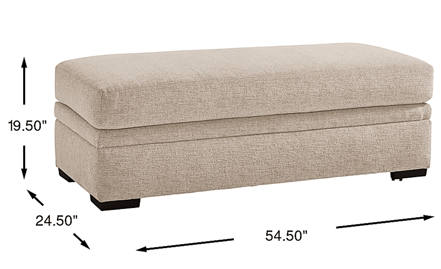 To achieve a balanced look, an ottoman should typically be about two-thirds the length of your sofa and roughly the same height as your seat cushions. This ottoman stands at 19.5 inches tall and 54.5 inches wide, making it a perfect proportional match for standard contemporary sofas and large sectionals. Its rectangular shape and 24.5-inch depth also allow it to serve as a comfortable footrest for multiple people simultaneously without overwhelming the floor plan.