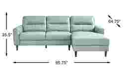 You can search high and low for a living room style as striking as the Sutton Heights sectional, but you'd be depriving yourself of the fantastic amenities in this beautiful piece. Upholstered in top grain leather where the body touches, the right arm facing chaise and left arm facing loveseat offer premium comfort with sumptuously padded seats and tufted cushions. Flare arms hug each end of the sectional with welted seams while top-stitched seams on the seats and backs highlight the piece's elegance. Flush with rich modern appeal, the upholstery's aqua color is offset by tapered legs in dark brown finish. Upholstery: Top grain leather where the body touches and polyurethane fabric sides and backs.
