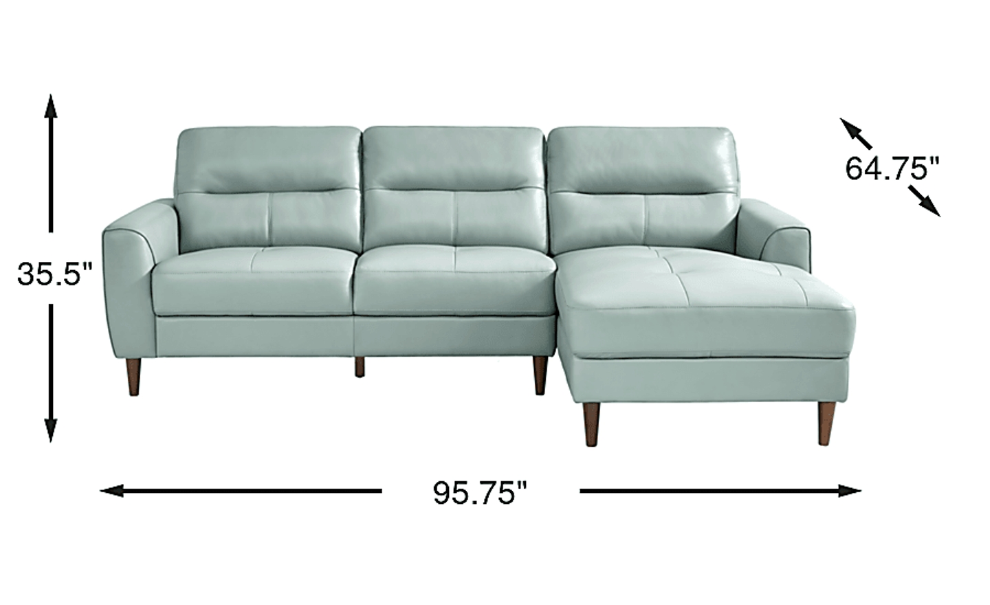 Based on our furniture care expertise, we recommend dusting the leather regularly with a soft, dry cloth to prevent grit from settling into the grain. For minor spills, gently blot the area with a cloth dampened with warm water and a very mild soap. To protect the integrity of the top grain leather and the vibrant aqua color, it is best to position the sectional away from direct sunlight and heat sources, which can cause leather to dry or fade over time.