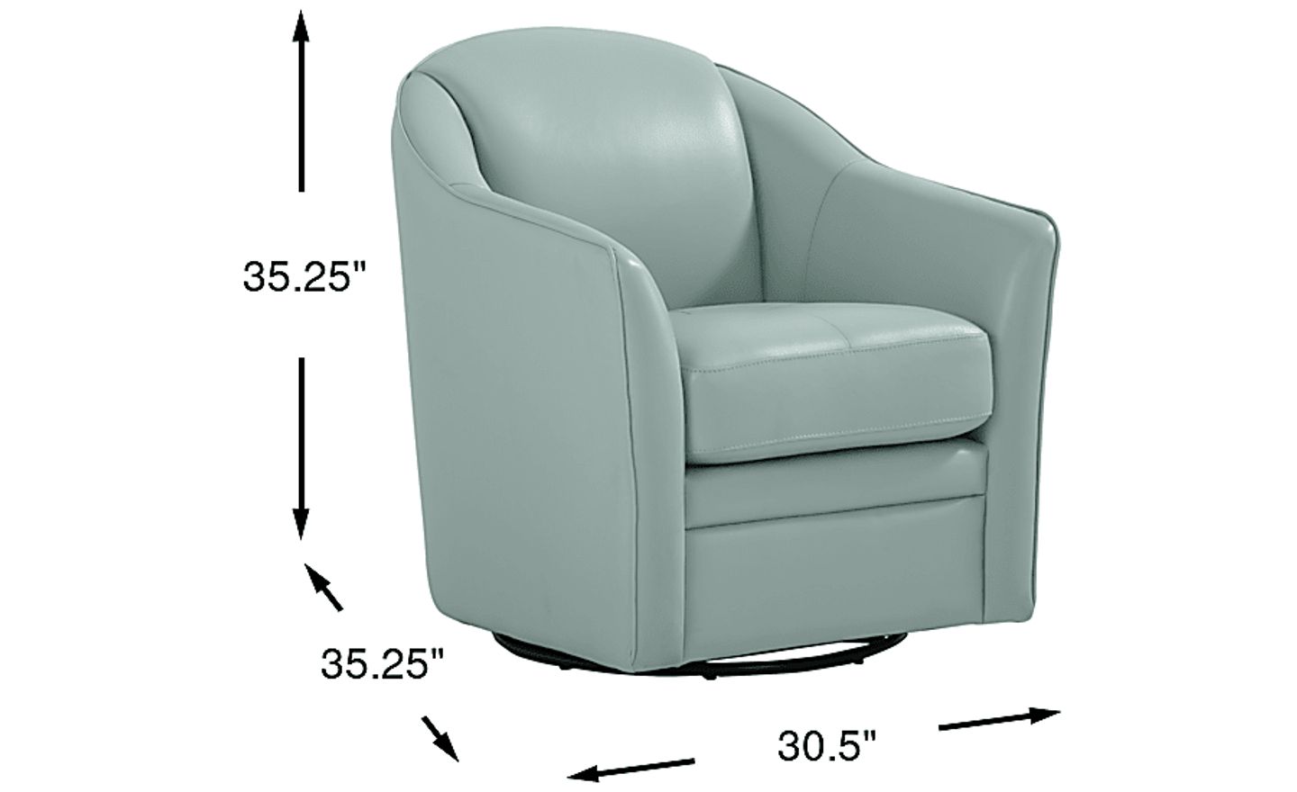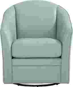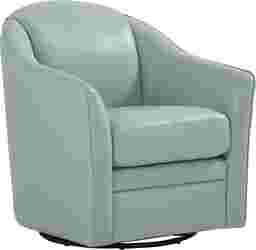 You can search high and low for a living room style as striking as the Sutton Heights swivel chair, but you'd be depriving yourself of the fantastic look this beautiful piece brings to the household. Upholstered in top grain aqua leather where the body touches, this chair features a rounded barrel-back silhouette with smooth, curved lines and integrated shelter-style arms that wrap seamlessly into the back. The tight back and cushioned seat create a clean, tailored look, while the compact, tub-style frame sits on a hidden swivel base for 360-degree movement. Its soft, curved profile makes it ideal as a modern accent chair, bedroom chair, or living room swivel chair. Upholstery: Top grain leather where the body touches and polyurethane fabric sides and backs.