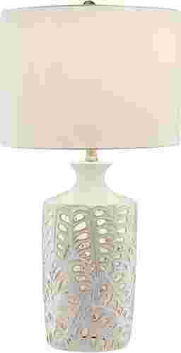 Renew and refresh your decor with the Swain Island Cream Lamp. It showcases an enchanting ivory white leaf-motif design, adorned with intricate cutouts that allow the night light to delicately illuminate your space. This lamp is designed with a versatile 3-level switch, providing you with the flexibility to select between illuminating the top light, the lamp body night light, or both simultaneously. To complete this exquisite piece, it is topped with a crisp, clean white fabric shade, introducing a touch of timeless elegance to its already artistic appeal. Partial assembly may be required.