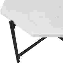 Elevate your living room with the contemporary style of the Swallowfield coffee table. This modern coffee table features an octagonal white quartz table top with a matte black powder coated metal base, for a sleek and bold look. Flaunting a striking contrast, this octagonal coffee table brings a smart and sophisticated update to your living room decor. Customer assembly is required.