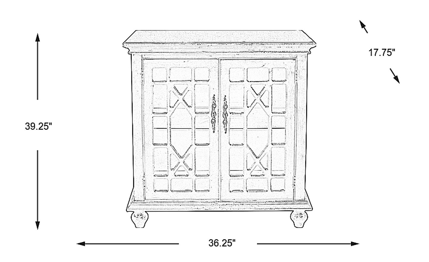 Rustic and stylish, the Swansboro black accent cabinet is absolutely striking. With a gorgeous textured black painted finish and made of birch wood and birch veneers, this cabinet makes a polished addition to any room. The two doors are also outfitted with Chinese Chippendale overlay treatment above the glass inserts. Add to that the two ornate antique-style door pulls, and a stunning and polished look is created. This cabinet also has an interior adjustable shelf for added storage.