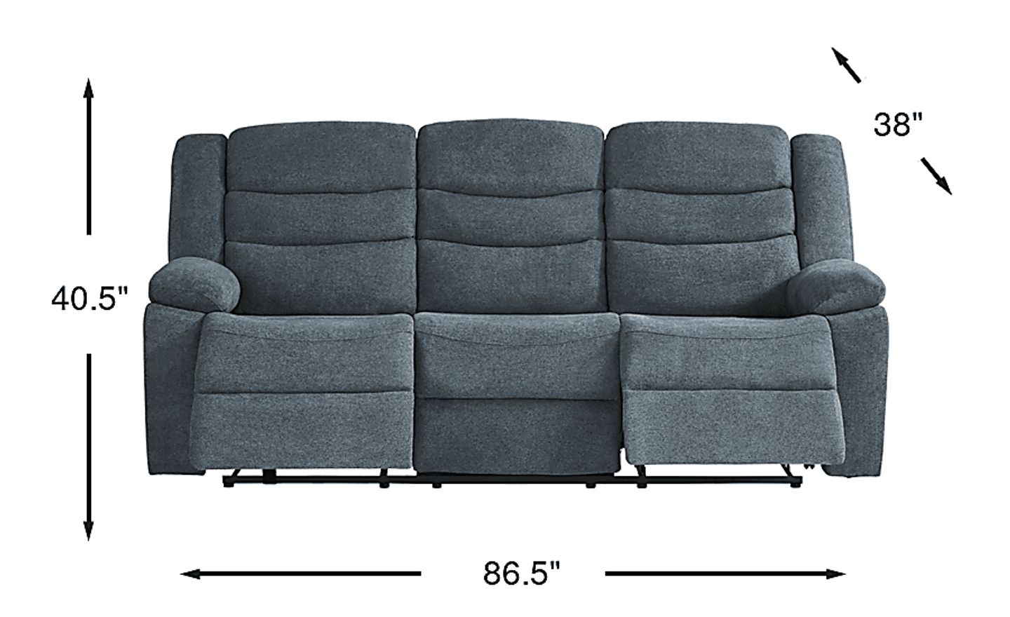 The Swansea Blue Reclining Sofa features a non-power reclining mechanism. This means that the reclining function is manually operated, allowing for straightforward and reliable adjustment to your preferred lounging position.