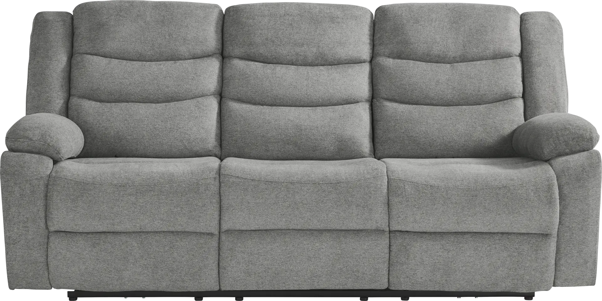 The Swansea Granite Power Reclining Sofa is designed for exceptional comfort, featuring pillow-top arms and a plush pillow back. It includes three attached seat cushions, complemented by padded outside arms and backs. This construction ensures a soft, inviting feel while providing consistent support, making it ideal for extended periods of relaxation and daily use.