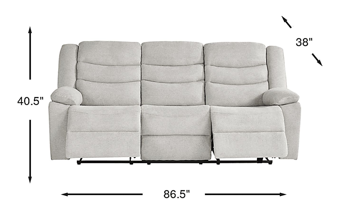 Measuring 86.50 inches wide, 38 inches deep, and 40.50 inches high, this 3-seater reclining sofa is designed to provide ample seating while being adaptable to various living spaces. Its streamlined profile, with pillow top arms and block legs, helps it integrate well into smaller rooms. When considering placement, it's always recommended to account for the space needed when the reclining feature is fully extended to ensure optimal comfort and room flow.