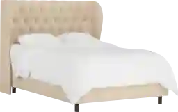 The Sweet Comfort bed provides a fresh interpretation of the classic wingback. Designed with gentle curves and cozy diamond-tufting, it welcomes you to your nightly slumber. It is upholstered in rich velvet fabric of linen shade. It includes upholstered headboard, upholstered side rails, and standard metal bed frame. The Sweet Comfort is manufactured in Illinois. Customer assembly is required. Foundation required. Mattress and foundation sold separately. This piece is made to order and may take up to 6 weeks to deliver.
