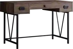 Industrial meets rustic charm in this highly functional contemporary designed Swelfling computer desk. Accented with strong black metal legs in a unique design, with plenty of storage that includes two side drawers with retro style metal pulls, and a wide middle drawer with a leather pull. The spacious tabletop constructed from high quality material with a smooth laminate brown wood grain finish can easily hold your computer and other office essentials. This stylish computer/writing desk will be a standout whether you place it in a corner of your living room, family room, or home office space. Customer assembly is required.
